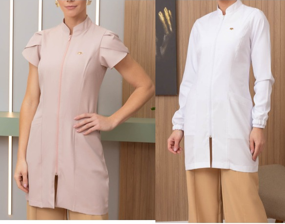 Modelagem de Jaleco gola padre manga longa e curta com zíper